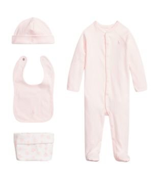 Made from soft and stretchy pure cotton interlock, this three-piece set includes a long-sleeve romper with foot covers, a bib and an adorable beanie. With snap-button fastenings and a Delicate Pink hue, dressing baby has never been easier (or sweeter).