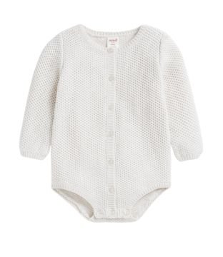Meet the sweetest and comfiest romper you ever did see! With a round neck, long sleeves and a button-down front, this little number makes for a great gift. Plus, it has snaps at the gusset, making for fuss-free changes – practical and pretty!